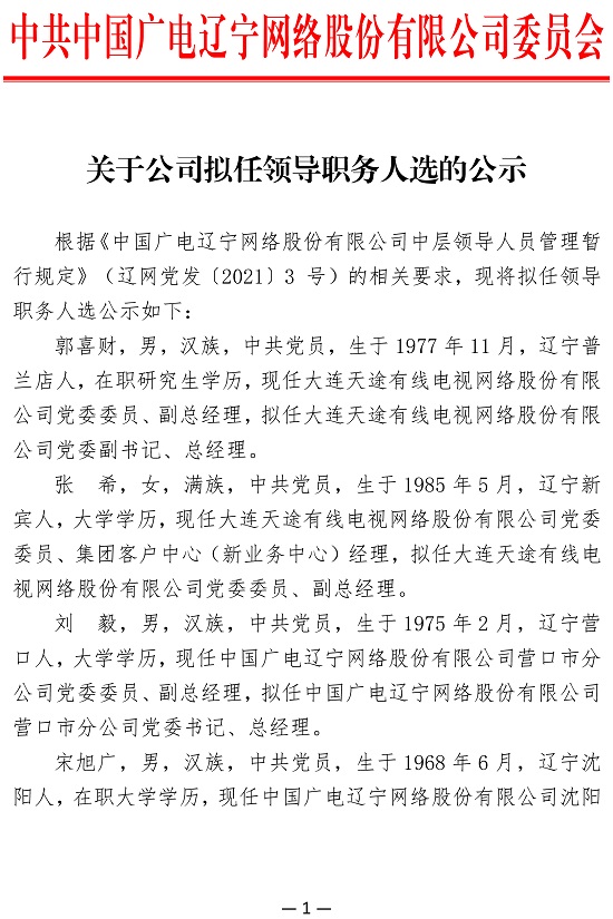 中國廣電遼寧網絡股份有限公司(簡稱中國廣電遼寧公司)前身為成立于2010年2月的北方聯合廣播電視網絡股份有限公司,系中央國有文化企業——中國廣電網絡股份有限公司省級子公司、遼寧省國有文化高新技術企業,是按照現代企業制度打造的集網絡建設、傳輸、運營及多功能開發(fā)與應用為一體綜合網絡運營商。